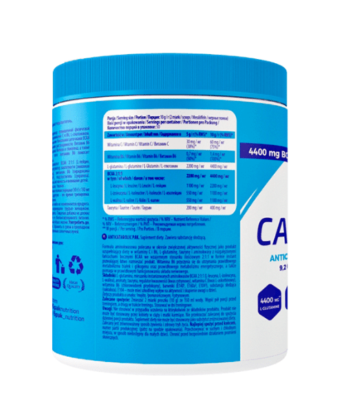 Anticatabolic PAK je napredni proizvod baziran na visokokvalitetnim BCAA amino kiselinama (omjer 2:1:1), vitaminima, taurinu i L-glutaminu. Zanimljive kompozicije okusa i topljivost svake porcije bez problema su velike prednosti Anticatabolic-a .
